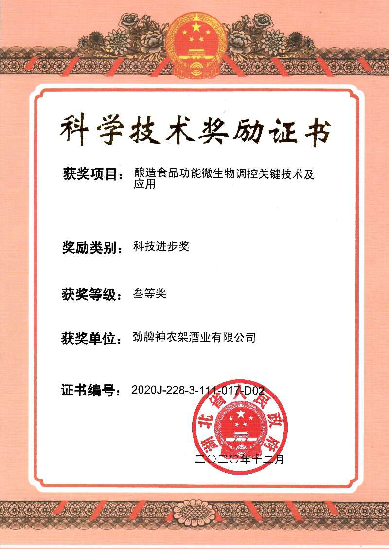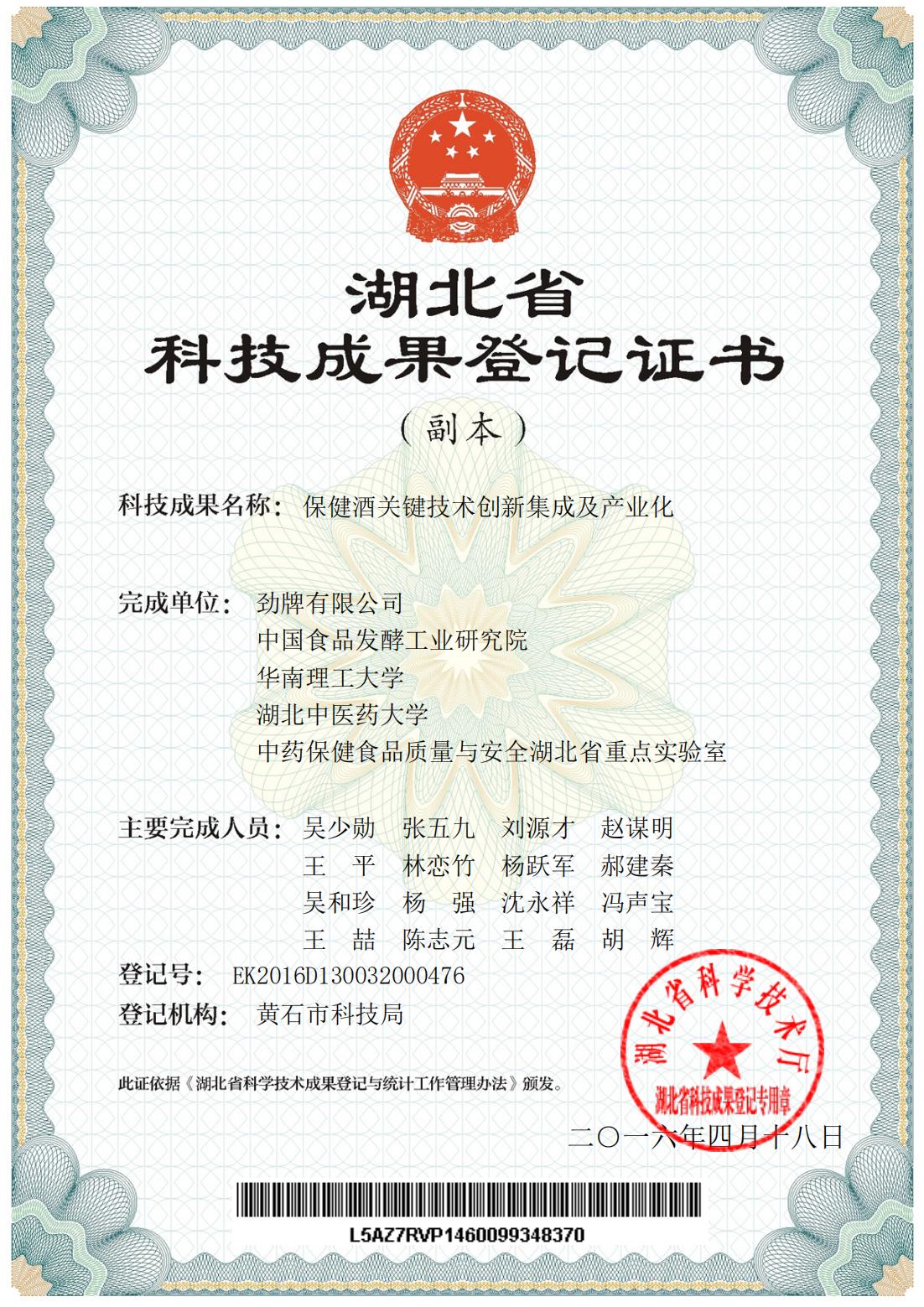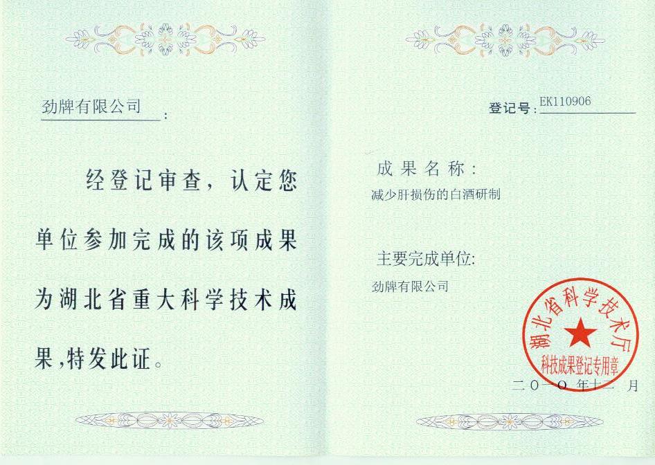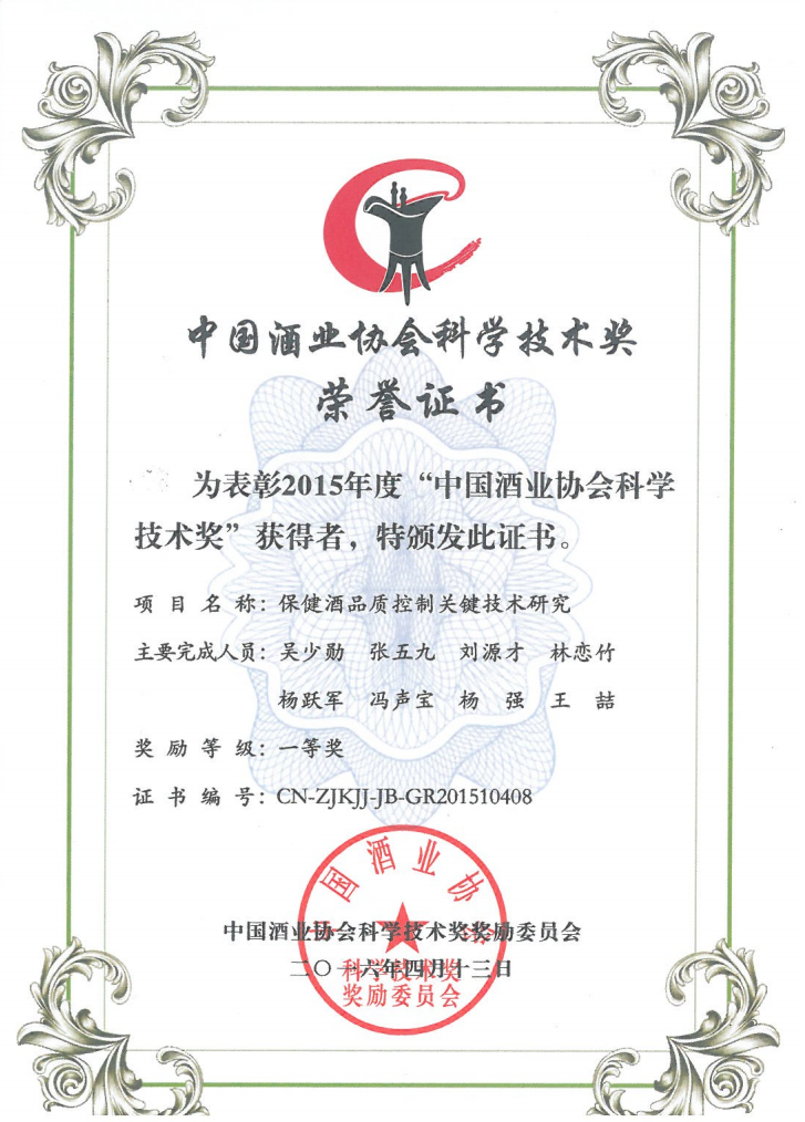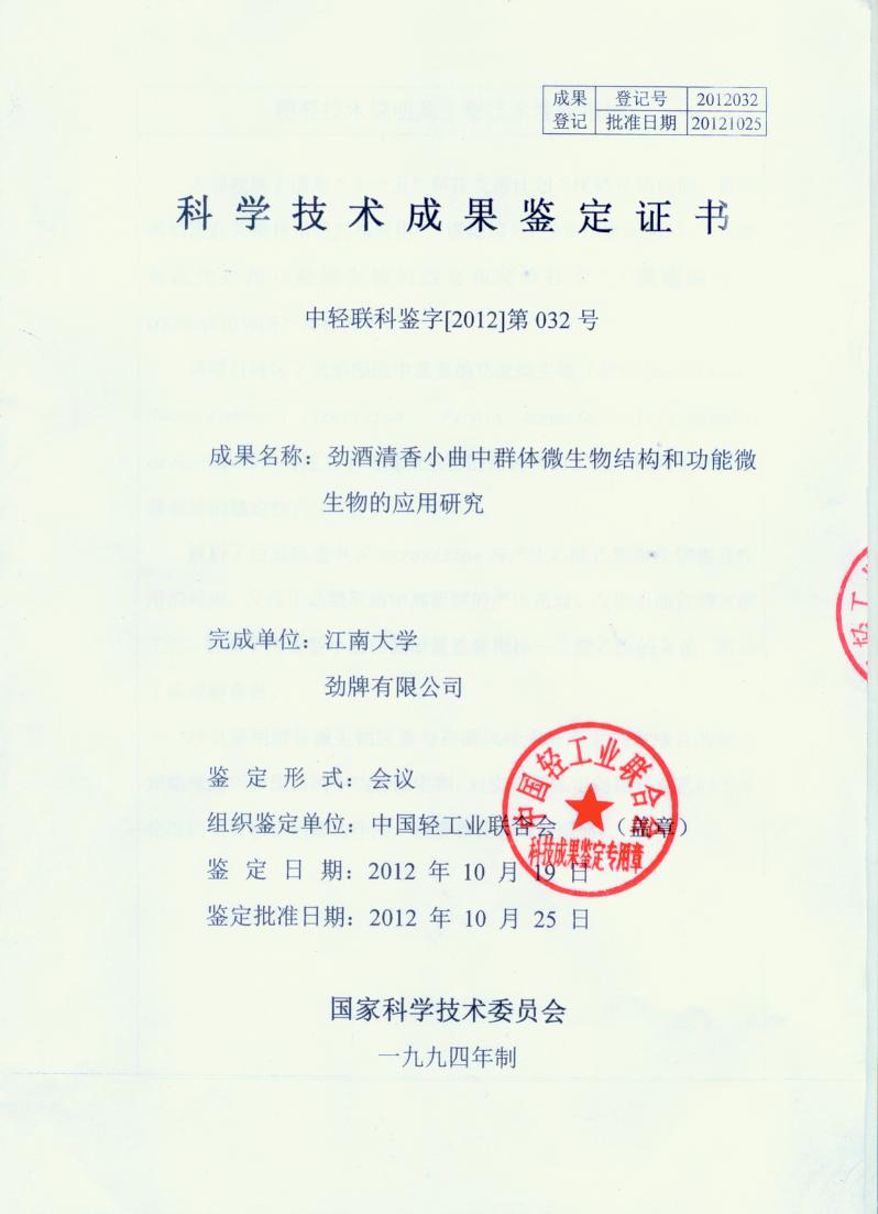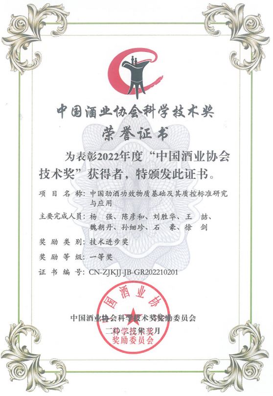 近年來(lái),公司圍繞保健酒、草本白酒和中草藥新產(chǎn)品研發(fā)、產(chǎn)品改進(jìn)和基礎應用技術(shù),在中藥數字化提取、小曲酒釀造新工藝、中藥指紋圖譜等核心技術(shù)方面擁有自主知識產(chǎn)權,通過(guò)行業(yè)協(xié)會(huì )等鑒定機構技術(shù)評估22項,其中15項成果鑒定為“國際領(lǐng)先”水平,7項成果鑒定為“國際先進(jìn)”水平。