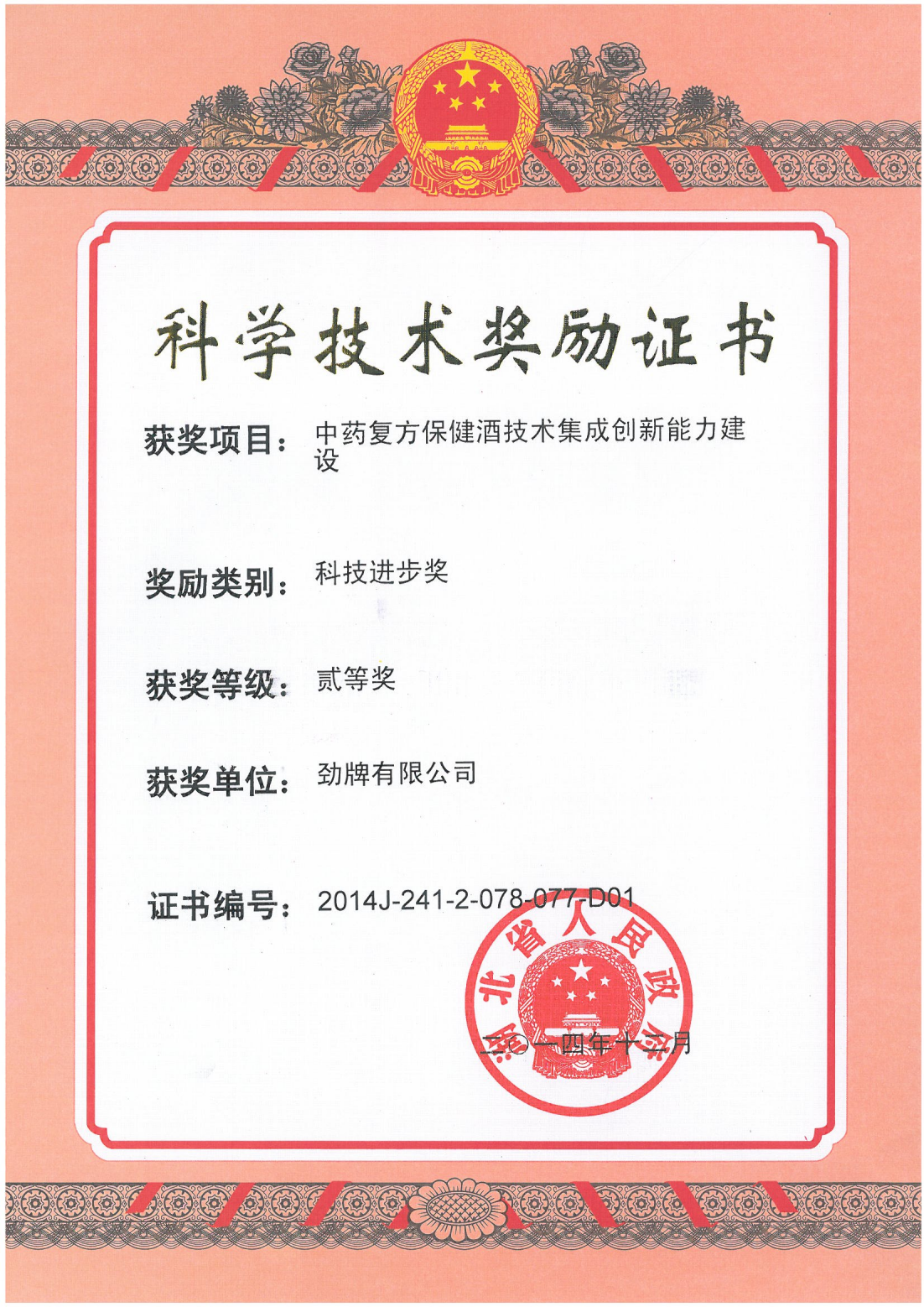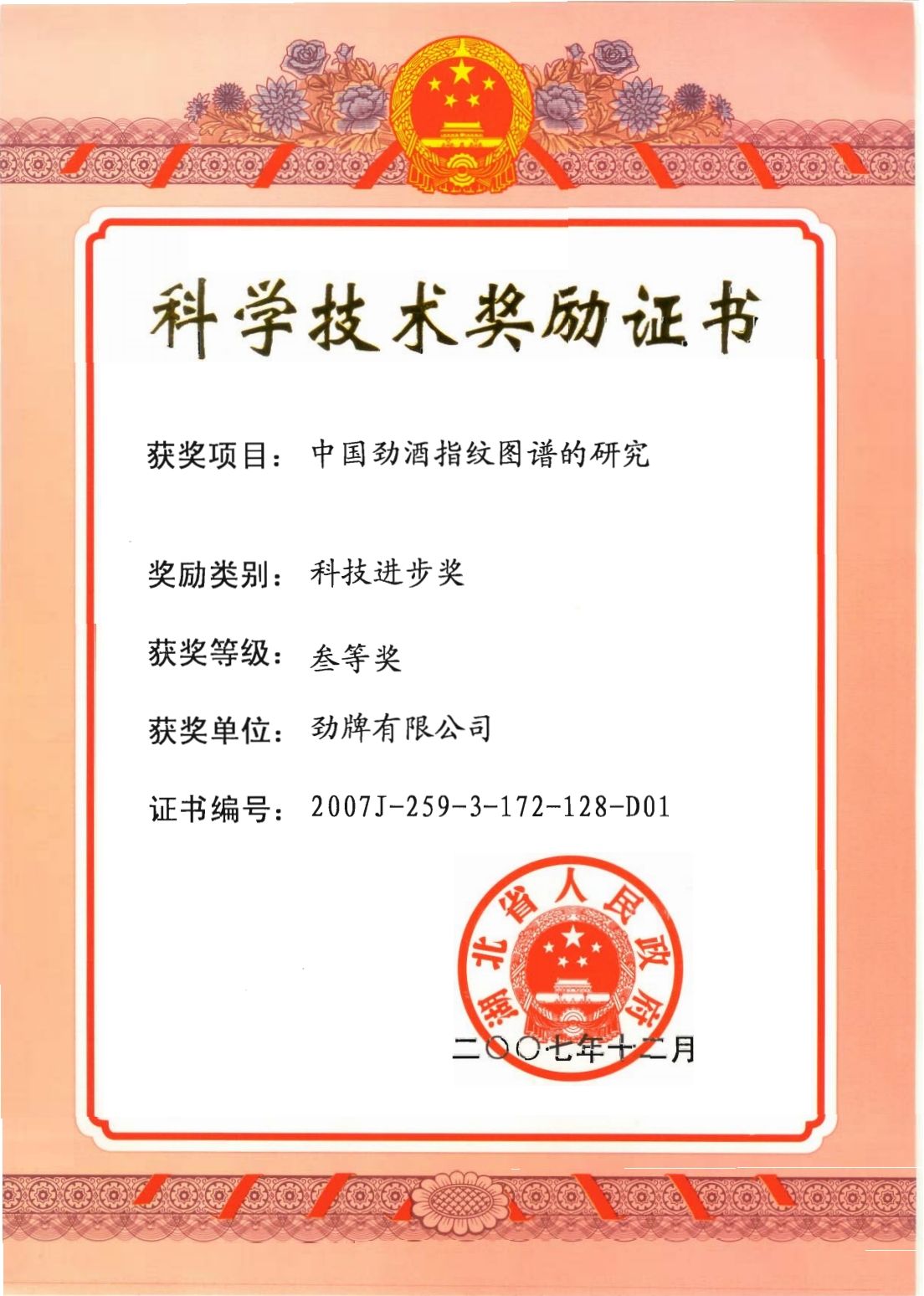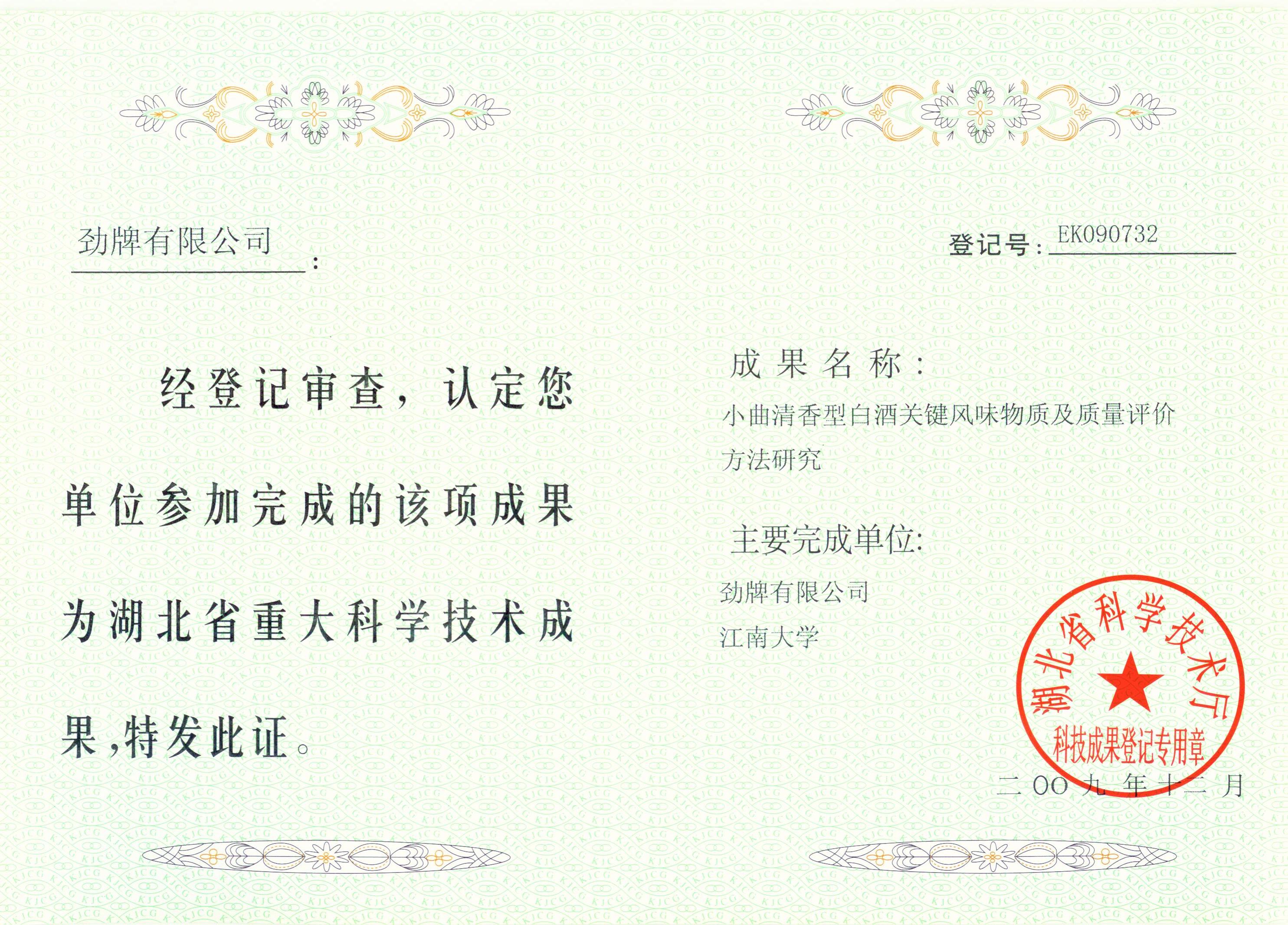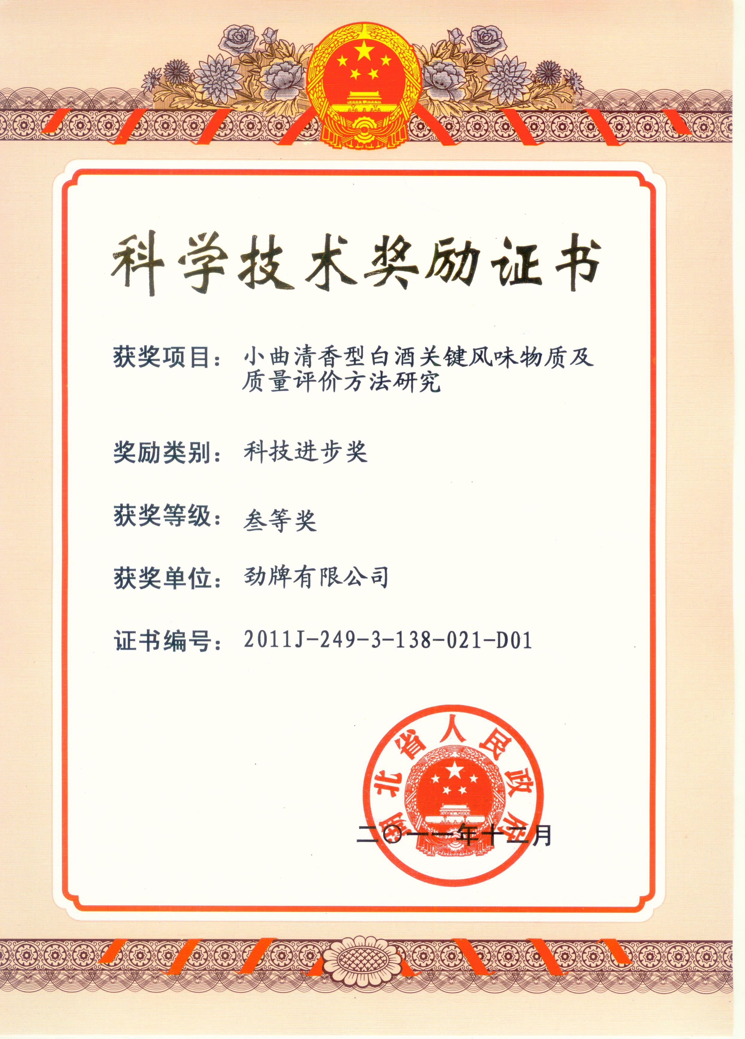 近年來(lái),公司圍繞保健酒、草本白酒和中草藥新產(chǎn)品研發(fā)、產(chǎn)品改進(jìn)和基礎應用技術(shù),在中藥數字化提取、小曲酒釀造新工藝、中藥指紋圖譜等核心技術(shù)方面擁有自主知識產(chǎn)權,通過(guò)行業(yè)協(xié)會(huì )等鑒定機構技術(shù)評估22項,其中15項成果鑒定為“國際領(lǐng)先”水平,7項成果鑒定為“國際先進(jìn)”水平。